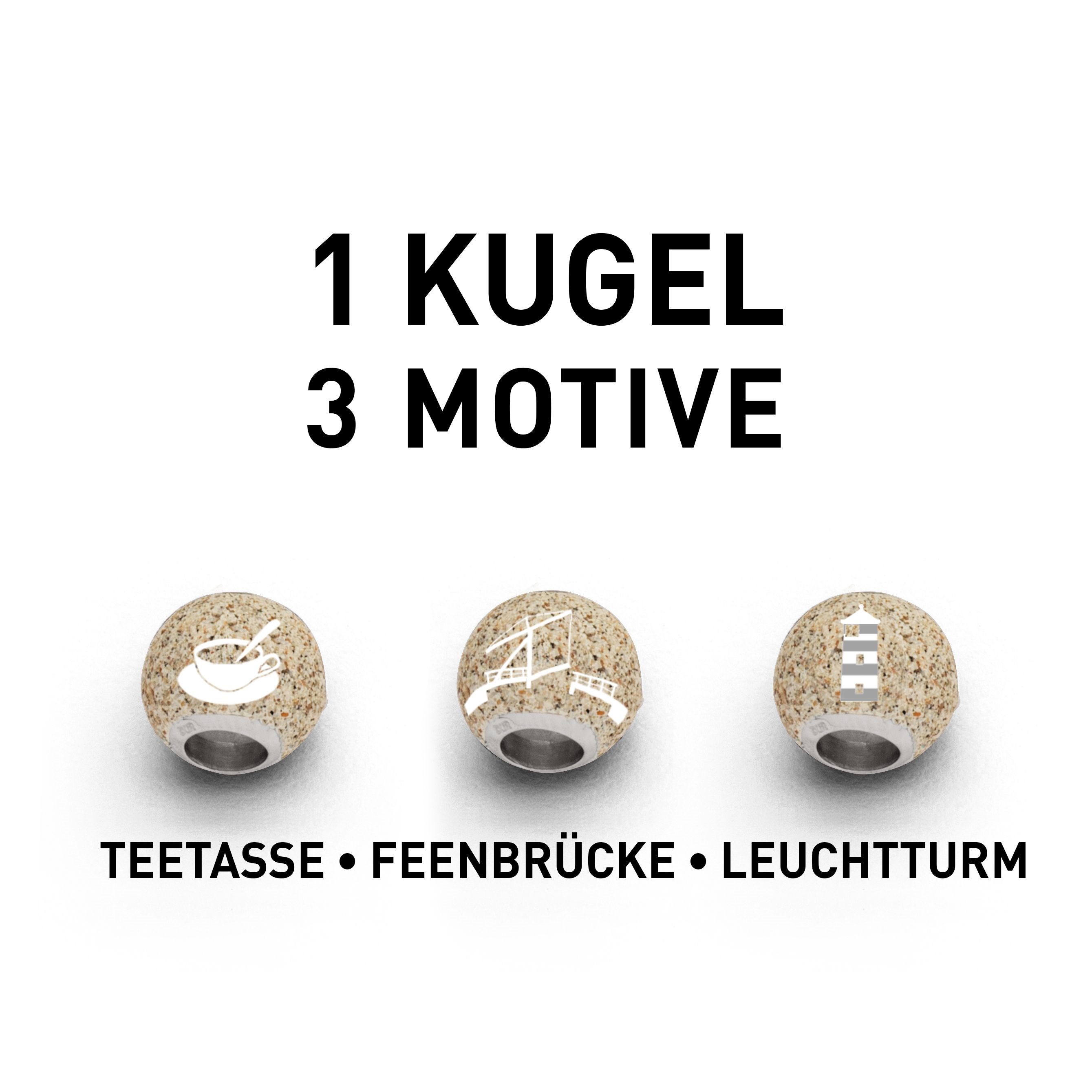 Ein Stück Ostfriesland zum Mitnehmen: Der DUR Anhänger P3549 „Bead Ostfriesland“ vereint die Liebe zur norddeutschen Küste, das Flair des Wattenmeers und den Zauber ostfriesischer Tradition. Die Strandsandkugel zeigt drei symbolträchtige Motive in glänzendem Silber – eine Teetasse für Leer, den Pilsumer Leuchtturm und die Fehnbrücke von Wiesmoor. Sie stehen für die besondere Kultur und die herzliche Gelassenheit der Region.