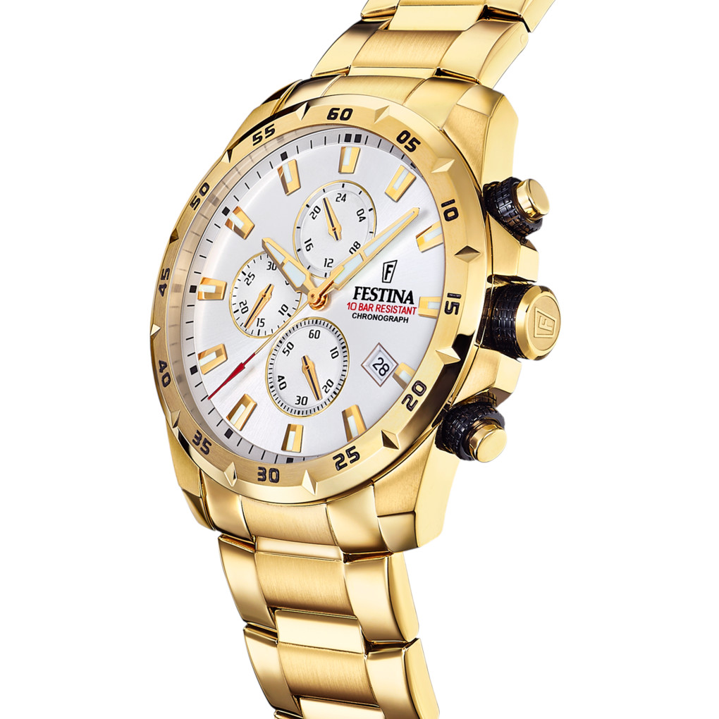 Festina Chronograph F20541-1 Vergoldet Silbern Edelstahlband 45 mm