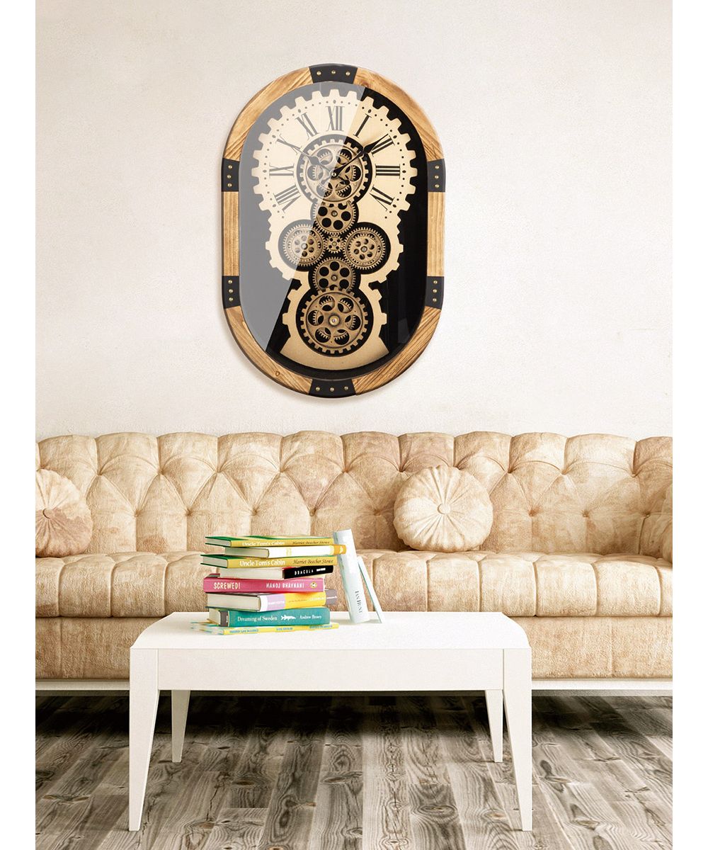 Produktinformationen "Gilde Wanduhr "Lado" 52640 Oval Zahnradoptik Holz Metall 38,5 x 58 cm"