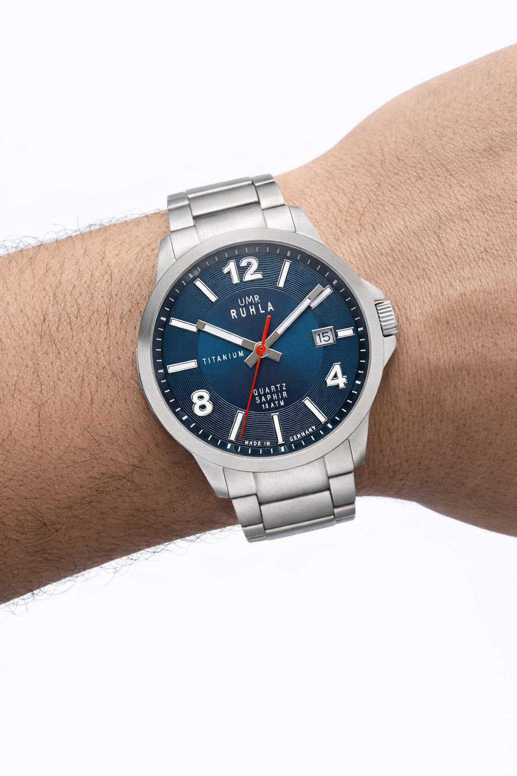 UMR Ruhla 32001 Titan Herrenuhr Blau Titanband 40 mm