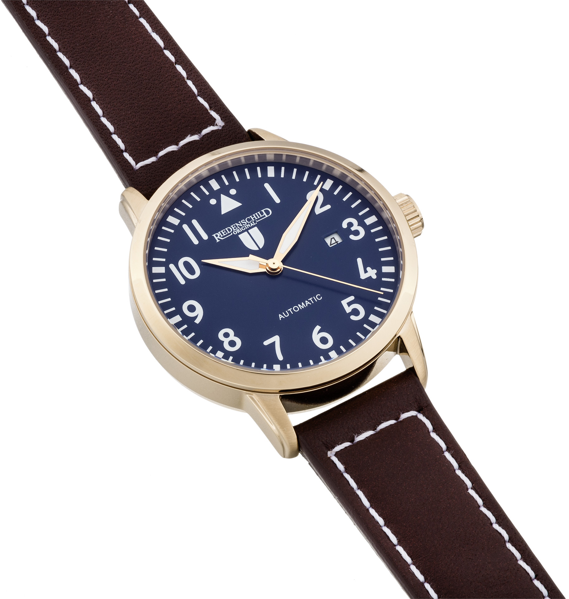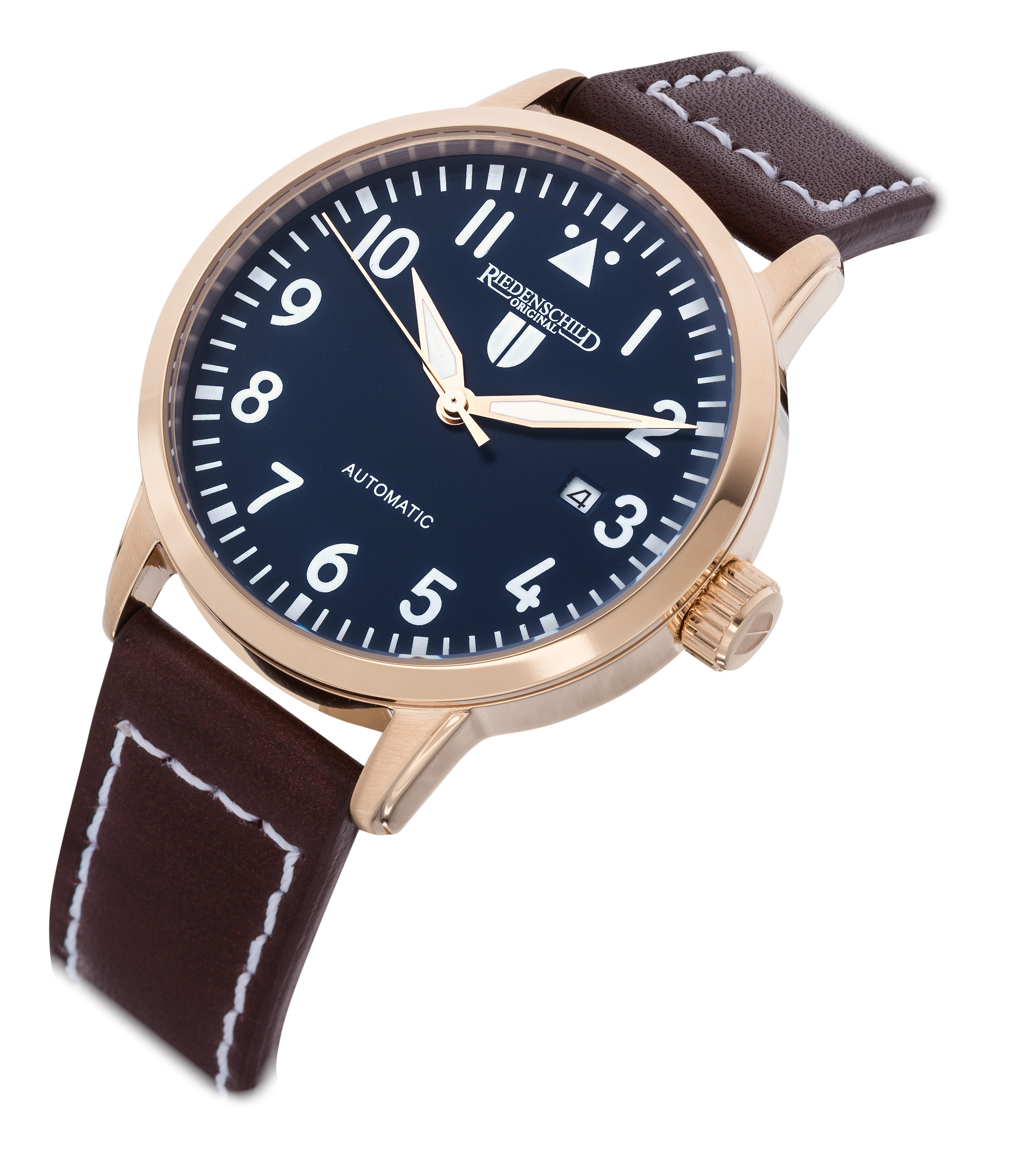 Produktinformationen "Riedenschild RS7602-04 Automatikuhr IP-Rose Blau Lederband Braun 42 mm "