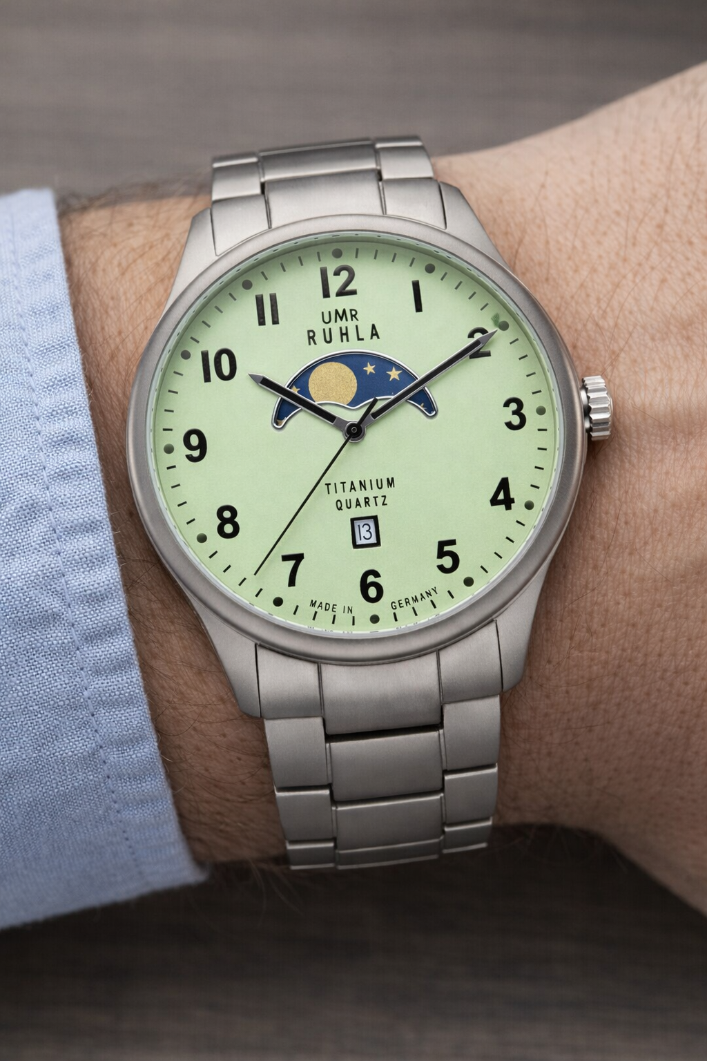 UMR Ruhla Mondphase Herrenuhr 20910M Grün Titanband 41,5 mm