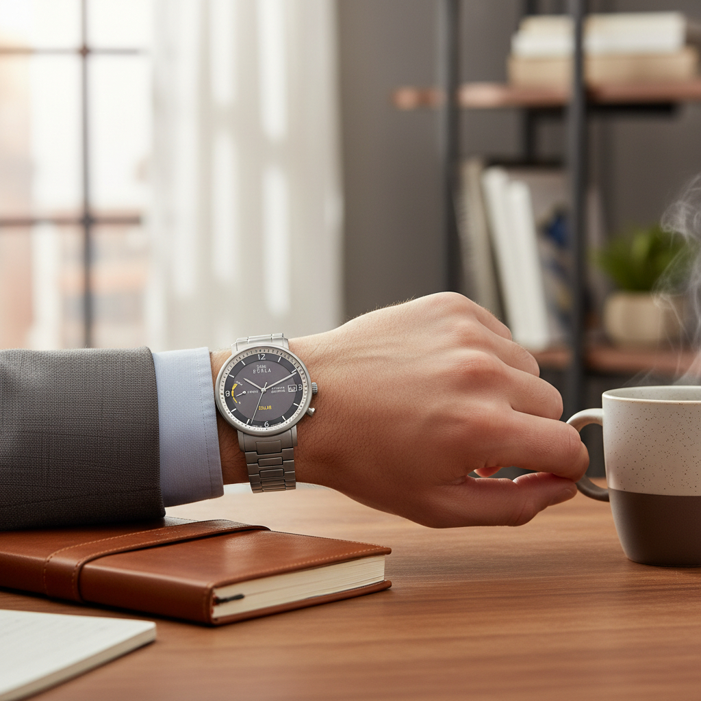 Modern, präzise und mit ausdrucksstarker Farbe – die UMR Ruhla Solar 94102M präsentiert sich mit einem markanten blauen Zifferblatt, einem hochwertigen Titan-Gehäuse und Titanband. Das Solarwerk sorgt für zuverlässigen Betrieb ohne Batteriewechsel, während das klare Design im Alltag wie im Büro überzeugt. Eine Herrenuhr, die Technik und Stil auf elegante Weise verbindet.