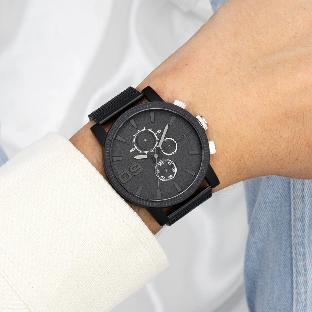 Oozoo XXL Herrenuhr C11214 Schwarz Meshband 50 mm