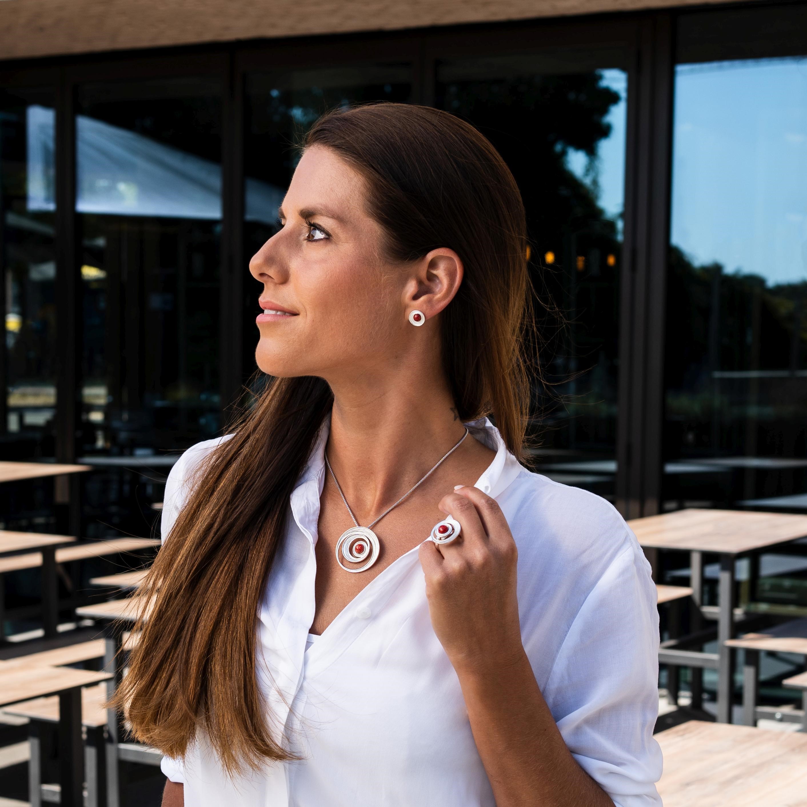 Ob als persönliches Statement-Piece oder als besondere Geschenkidee – der DUR Feuerstrudel Anhänger ist ein Blickfang mit Symbolkraft. Die Spirale steht für Energie, Entwicklung und Kraft, während der Korallenstein Lebendigkeit und Wärme verkörpert.