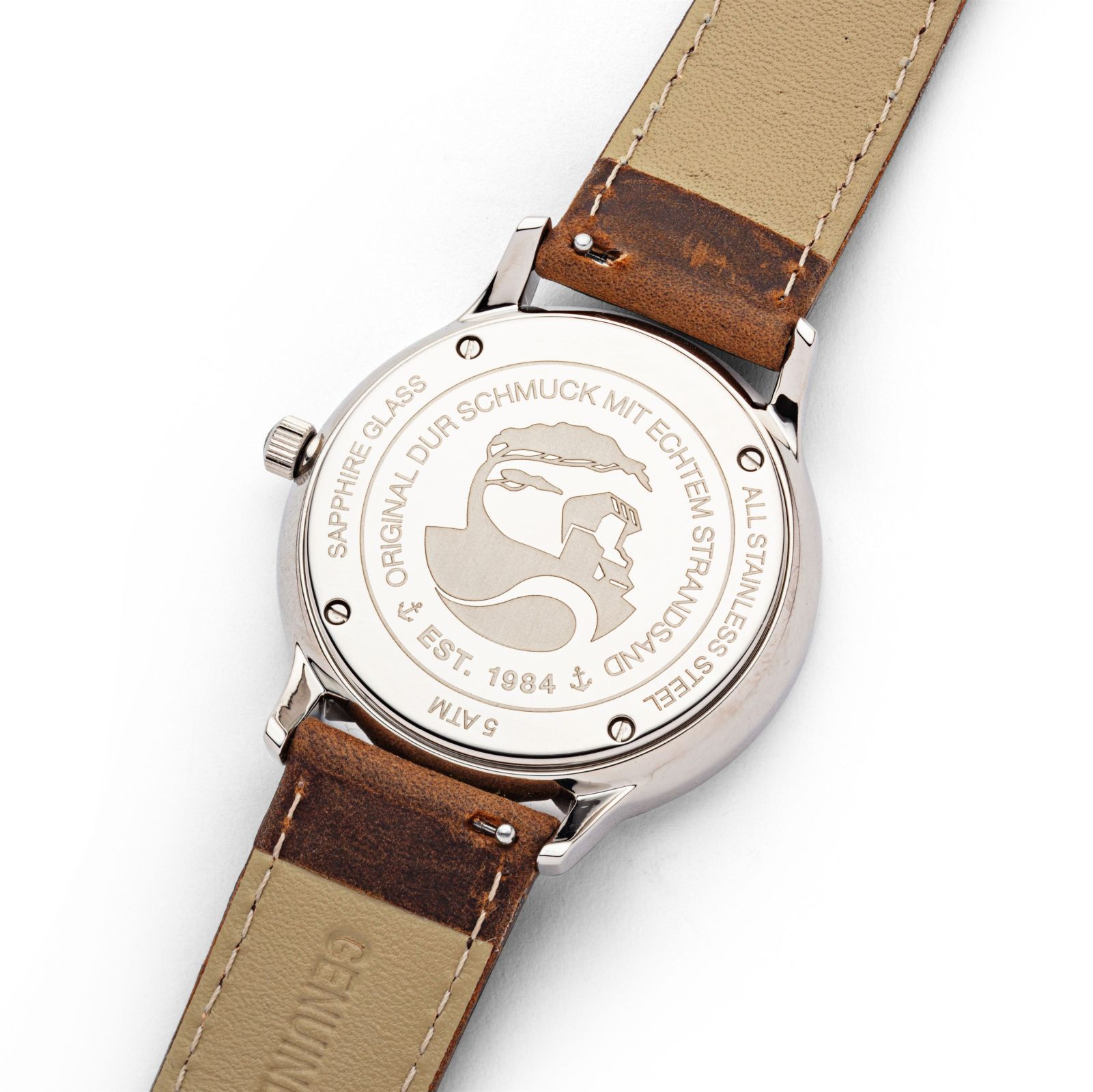 Produktinformationen "DUR Damenuhr DW003 Küste Strandsand – Lederband Braun 36 mm, Saphirglas"