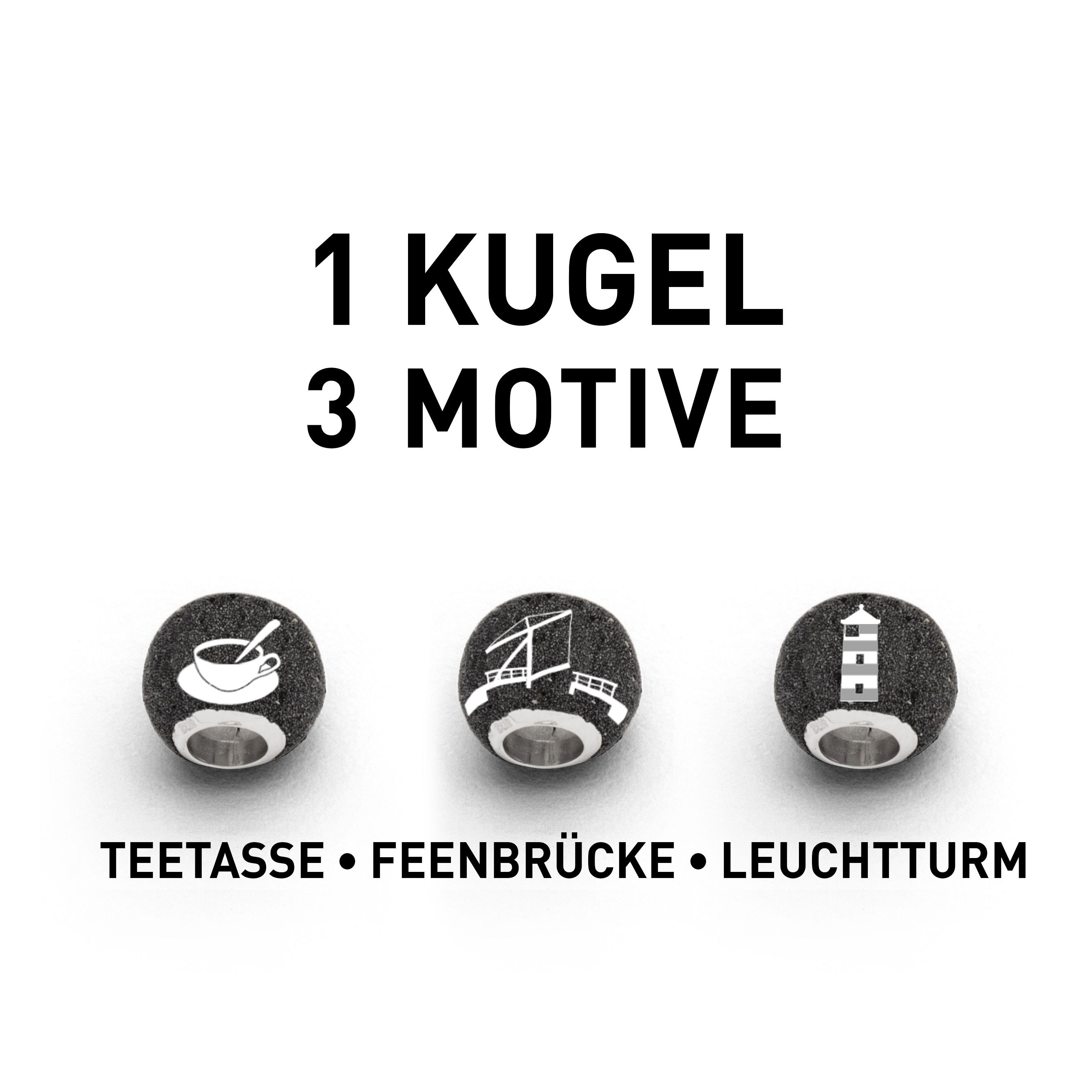 Die feine rhodinierte Kugelkette aus 925er Sterling-Silber (Länge ca. 42 cm) trägt einen edlen „Ostfriesland“-Bead, der mit tiefschwarzem Lavasand gefüllt ist. Dieses außergewöhnliche Naturmaterial symbolisiert Erdverbundenheit und Stärke – ein harmonischer Kontrast zum hell glänzenden Silber.
