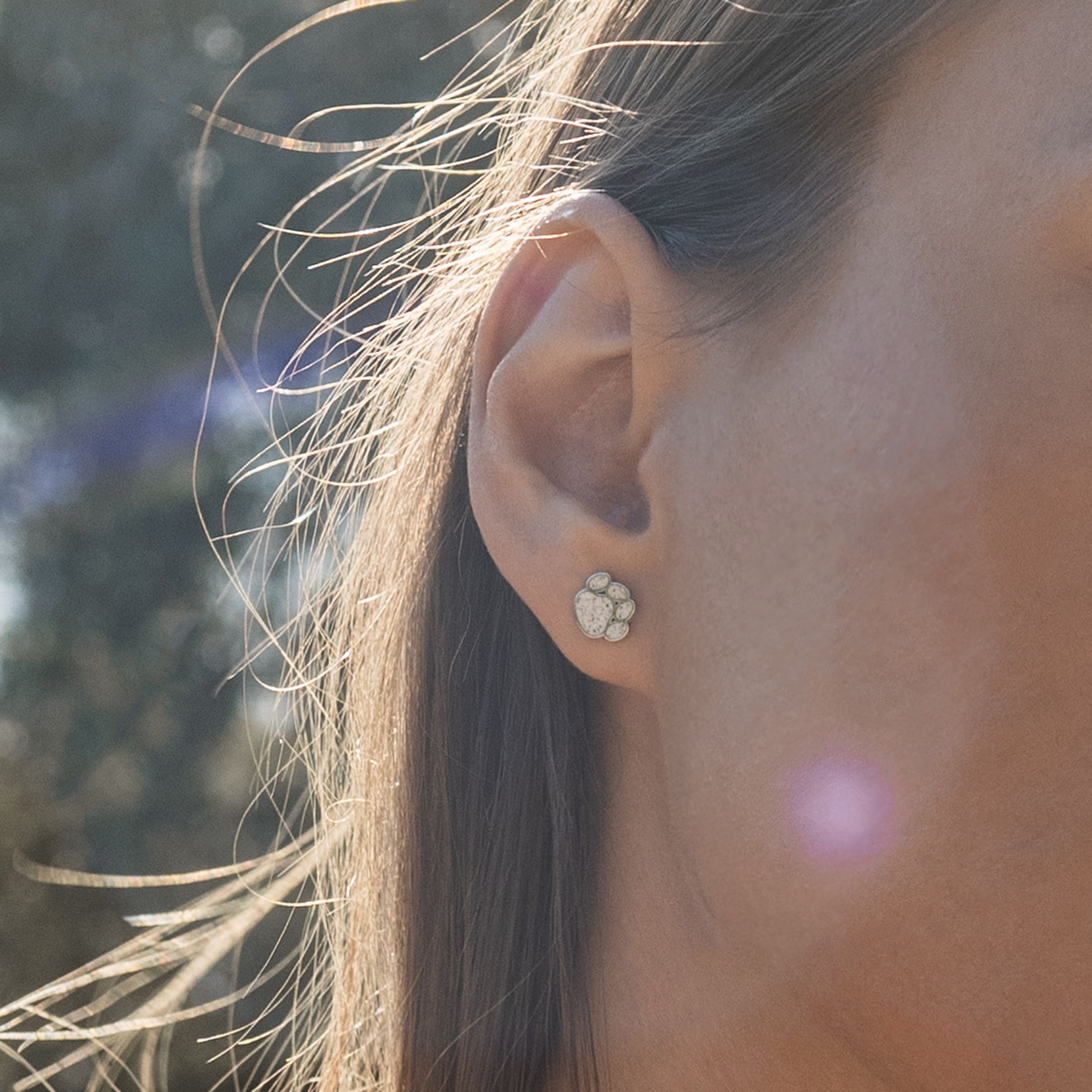 DUR Ohrstecker „Pfote“ – 925 Silber & Strandsand – 9 × 9,4 mm