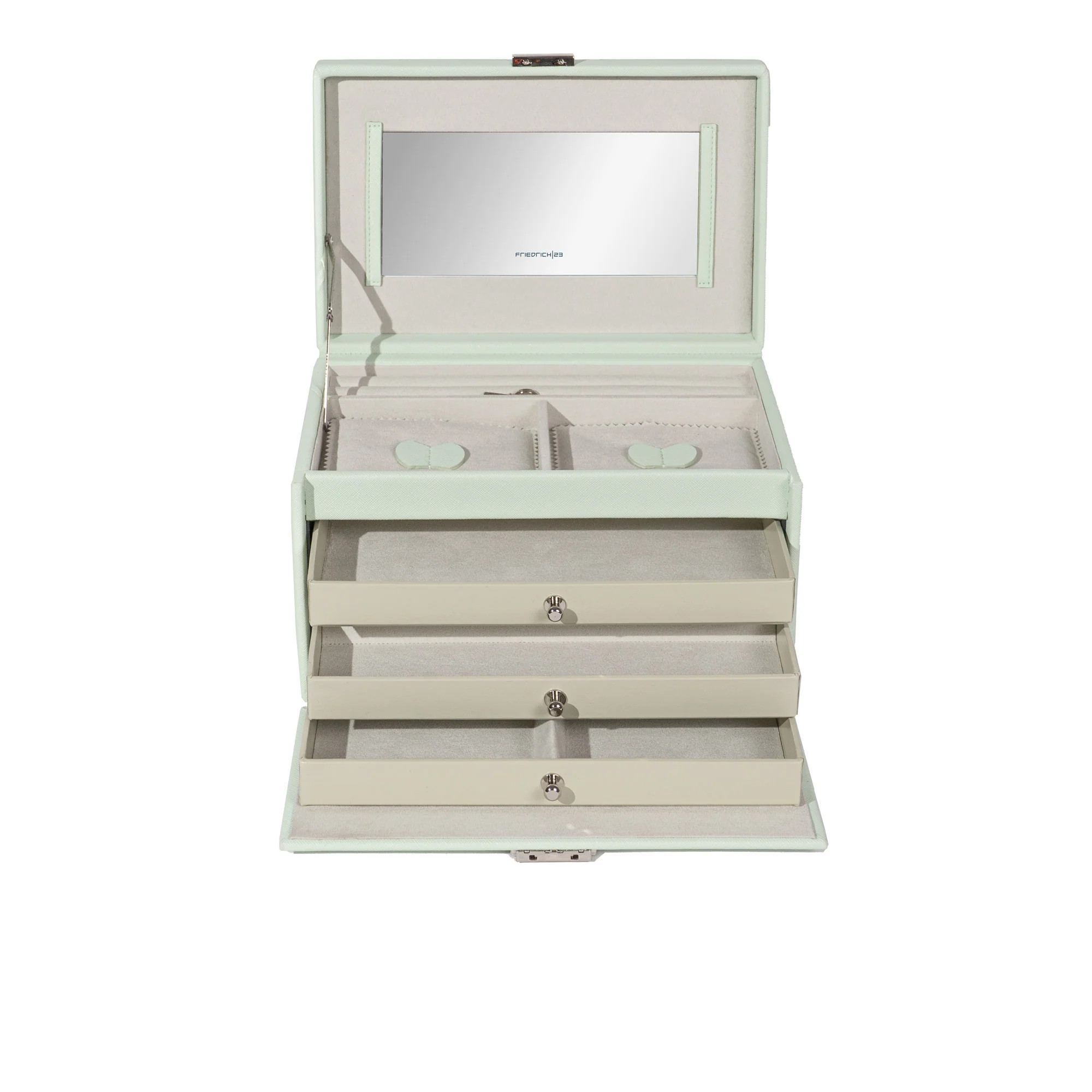 Friedrich23 Jolie 2.0 Schmuckkoffer 23256-71 – elegante Schmuckaufbewahrung in mintgrüner Kreuznarben-Optik