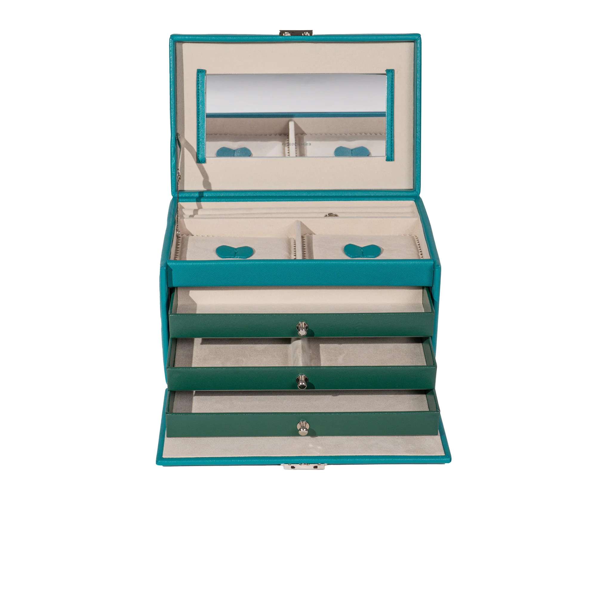 Friedrich23 Jolie 2.0 Schmuckkoffer 23256-72 – stilvolle Schmuckaufbewahrung in türkisfarbener Kreuznarben-Optik