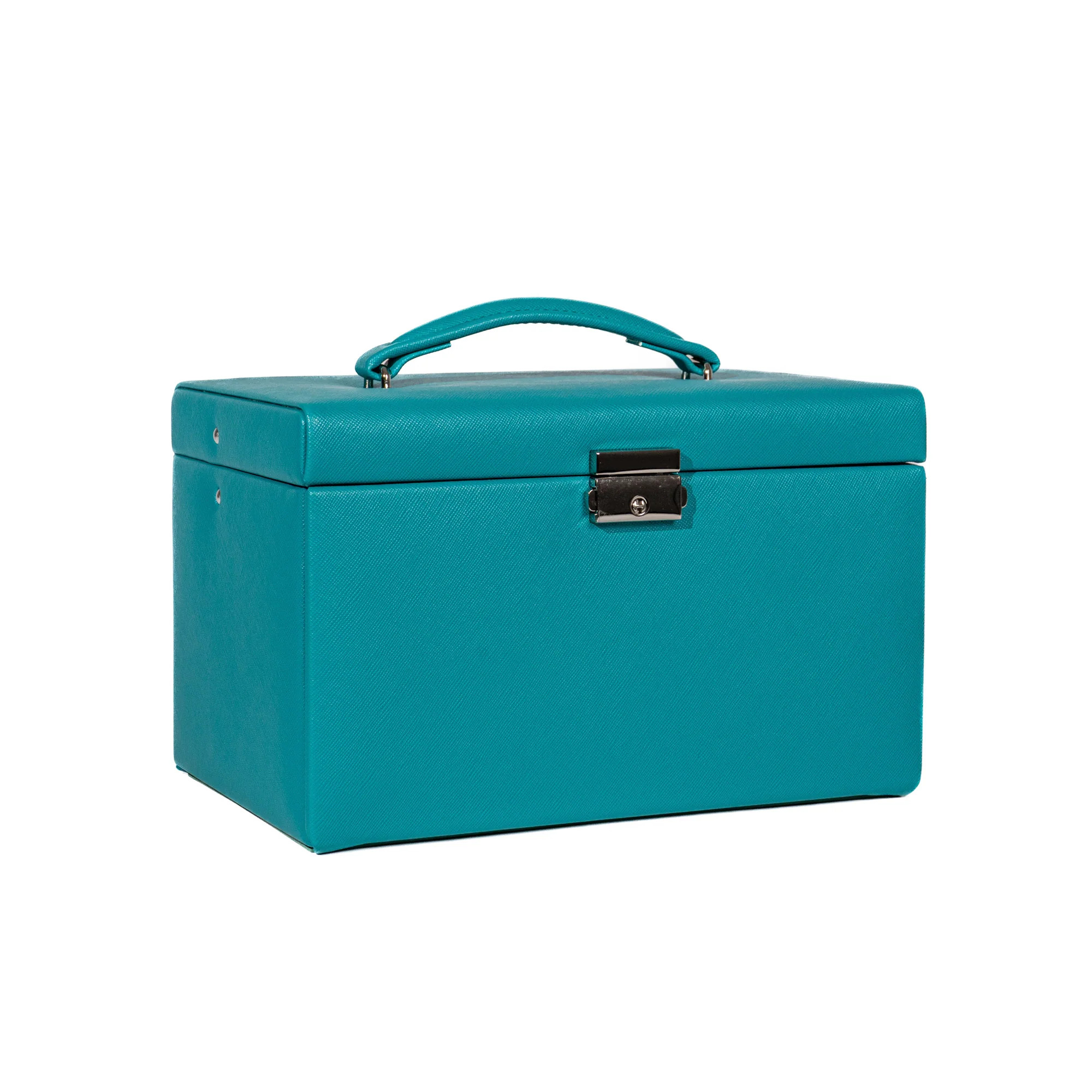 Der Friedrich23 Jolie 2.0 Schmuckkoffer 23256-72 überzeugt mit zeitlosem, edlem Design und hochwertiger Verarbeitung. Die Serie „Jolie“ bietet viel Platz für unterschiedlichste Schmuckstücke und präsentiert sich hier in einer modernen Kreuznarben-Optik in Türkis, die für einen frischen, eleganten Look sorgt.
