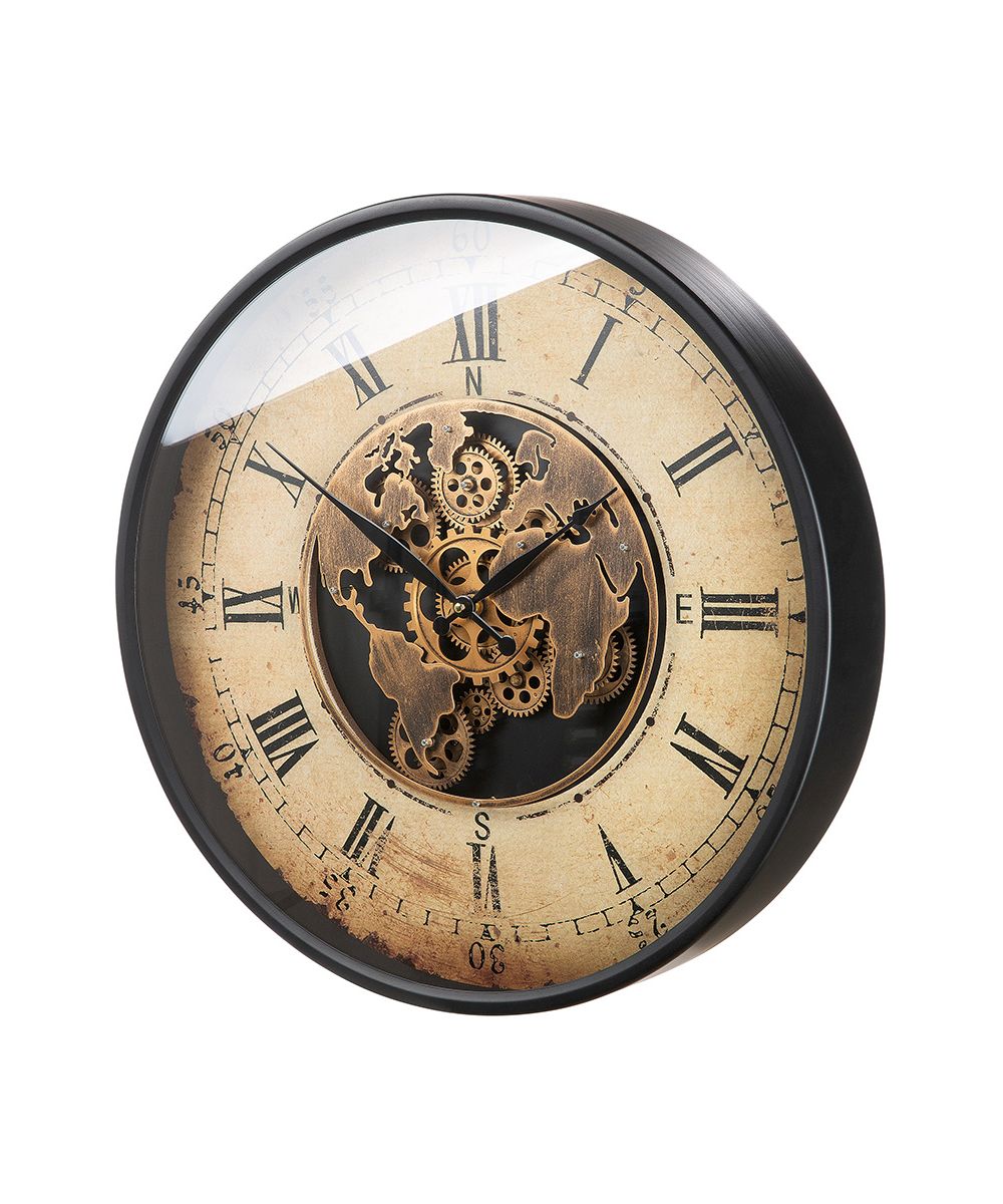 Gilde Wanduhr 46223 Rund Weltkartenmotiv Zahnräder Metall - 59,5 cm