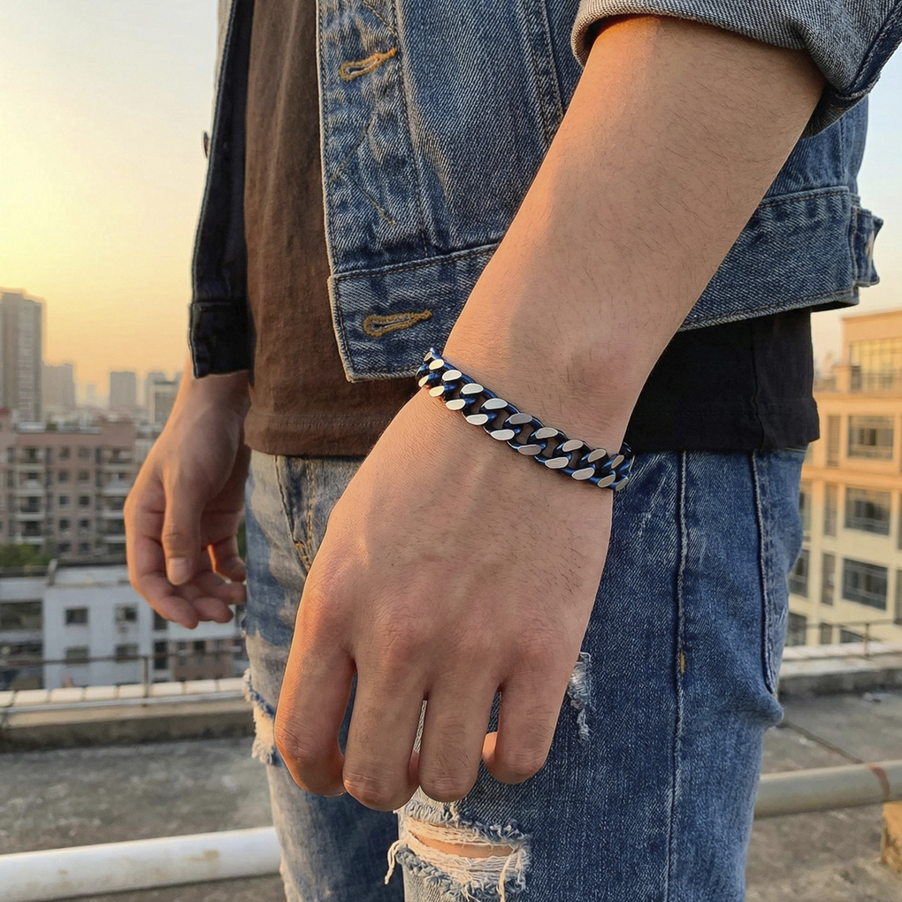 Mit einem Durchmesser von ca. 10 mm setzt das Kettenarmband ein deutliches Statement am Handgelenk und unterstreicht einen maskulinen Stil. Die Länge von ca. 20,6 cm sorgt für einen angenehmen Sitz und hohen Tragekomfort.