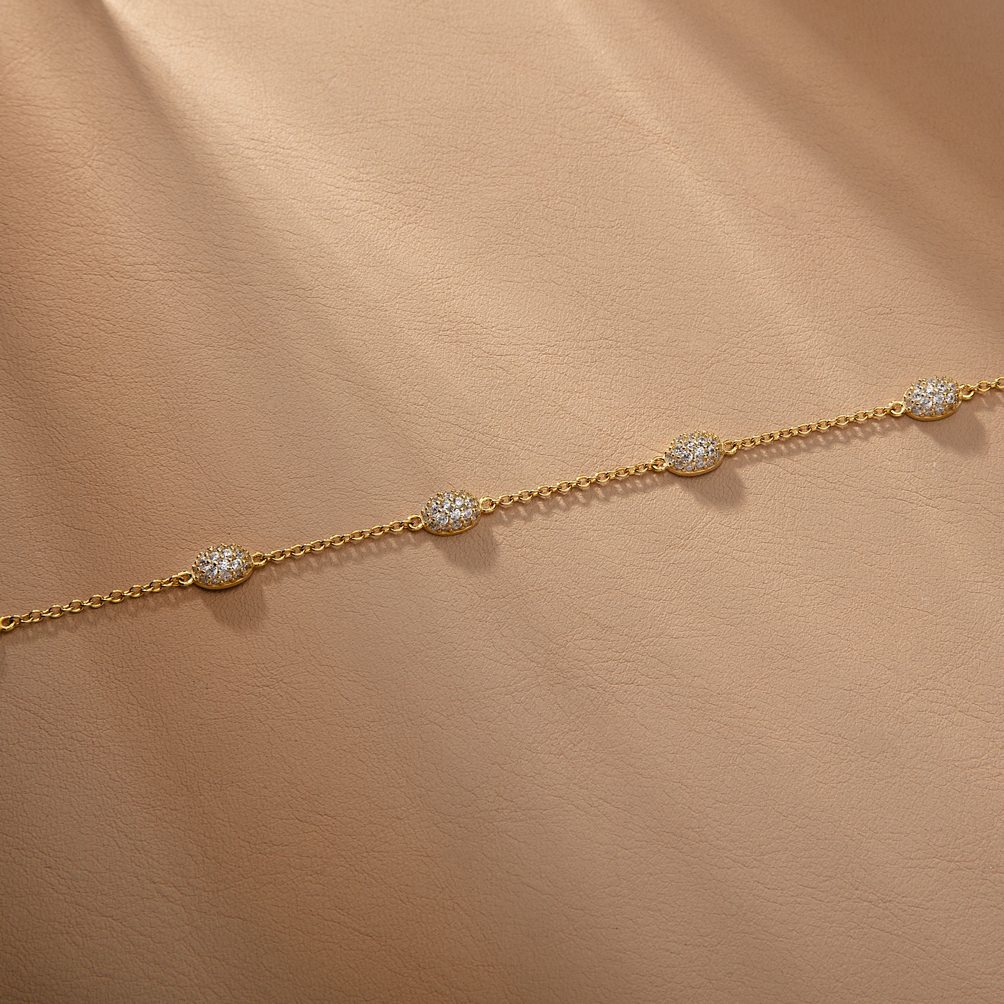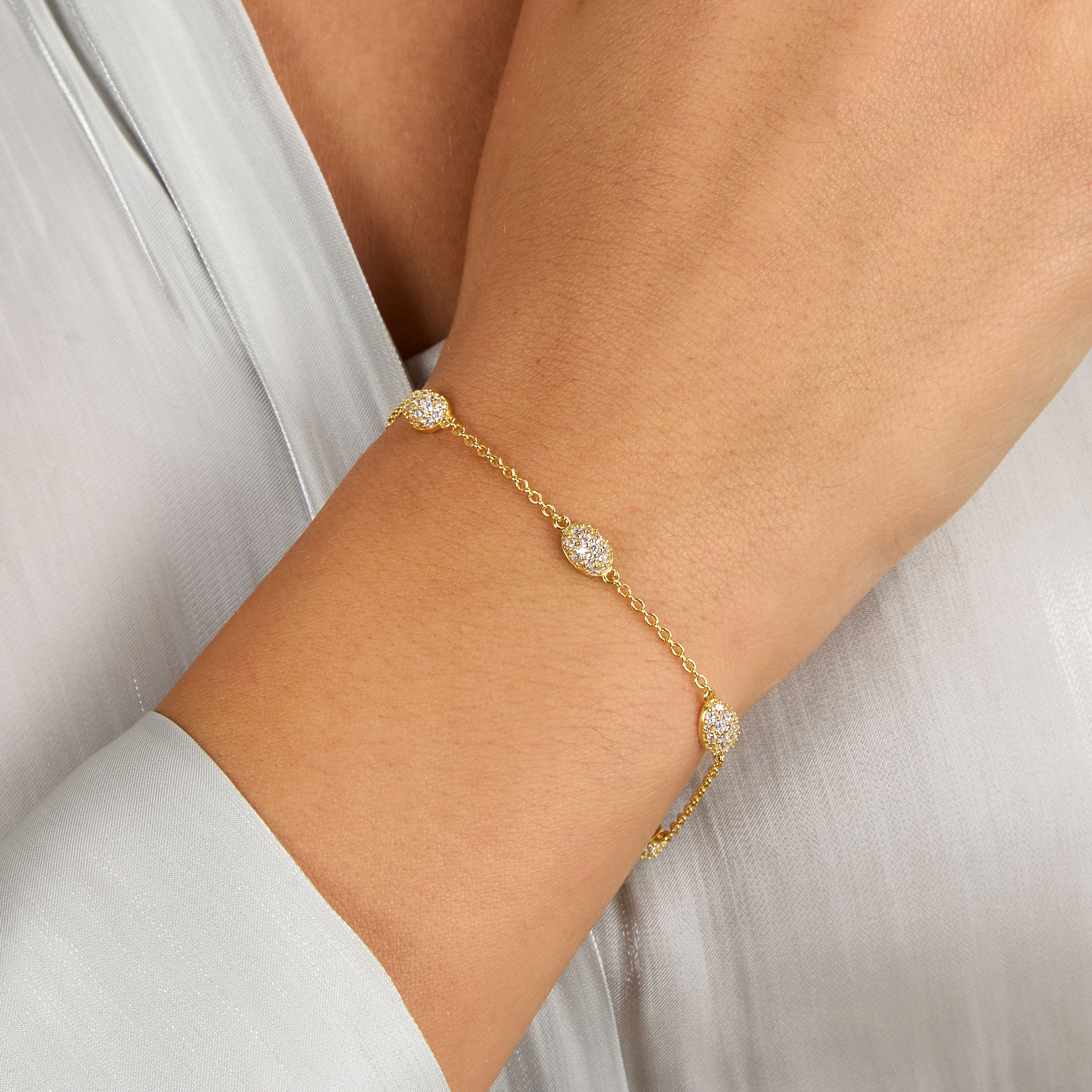 Die Pavé Kollektion steht für glamouröse Schmuckstücke mit funkelnden Akzenten. Die fein gesetzten Zirkoniasteine verleihen dem Armband eine luxuriöse Optik und machen es zu einem vielseitigen Accessoire.