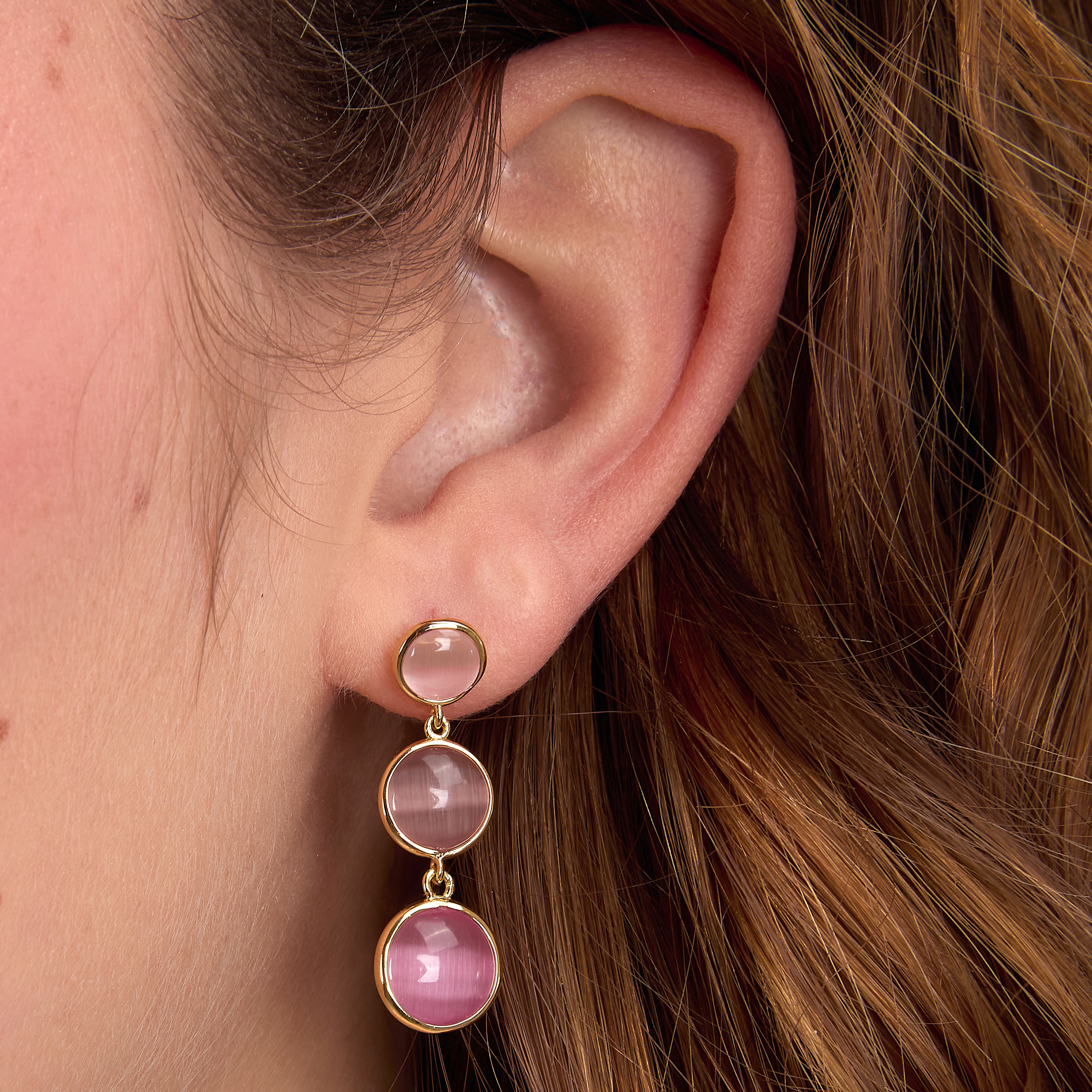 Produktinformationen "Morellato Venezia Ohrhänger SAZM18 – Vergoldetes 925 Silber mit pinken Katzenaugensteinen 27 mm"