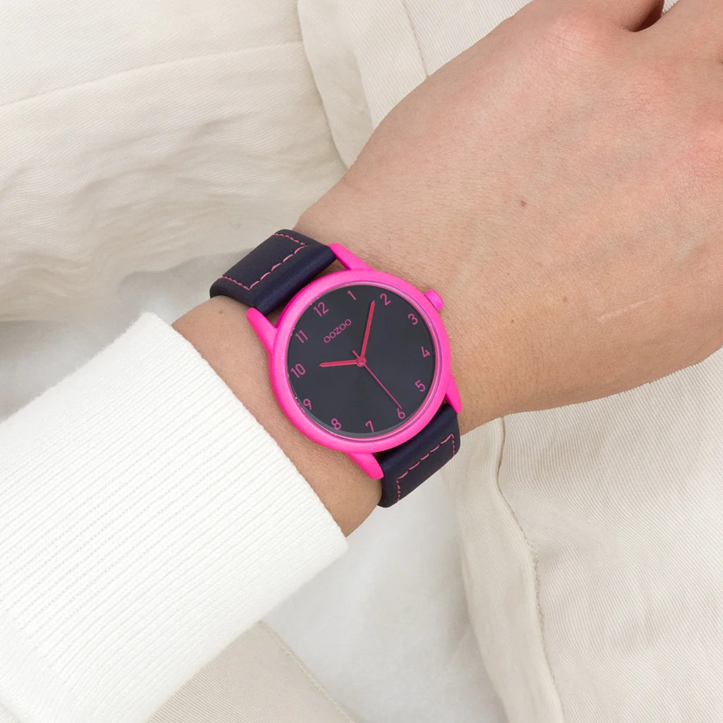 OOZOO Damenuhr C11559 – Dunkelblau & Pink 38 mm Lederband
