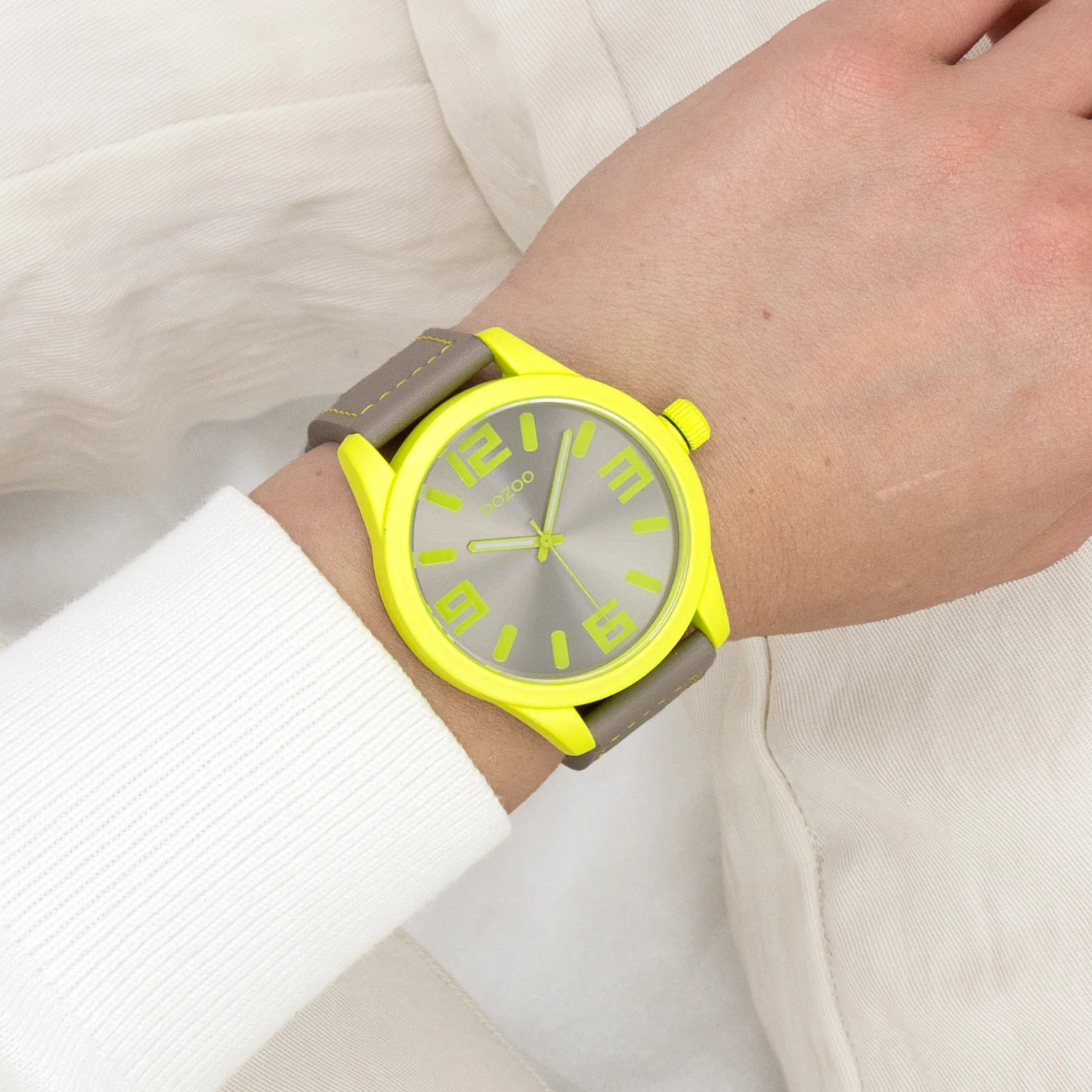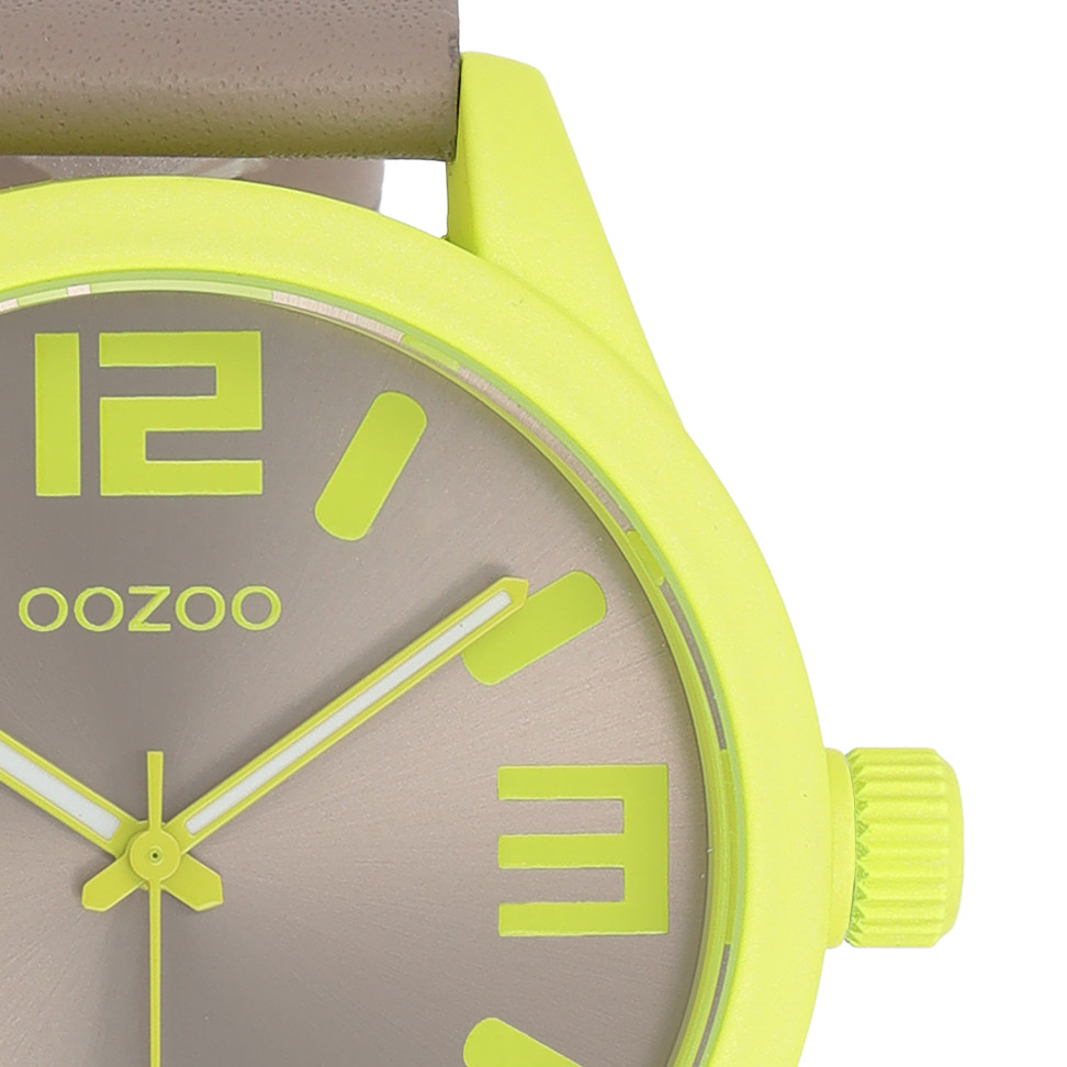 OOZOO XXL Armbanduhr C0904 – Taupe & Gelb Damen 46 mm Lederband