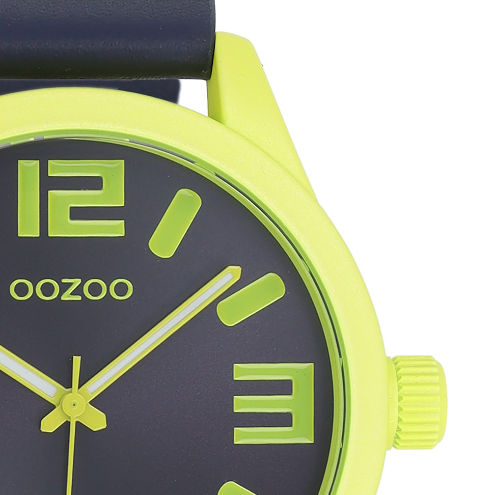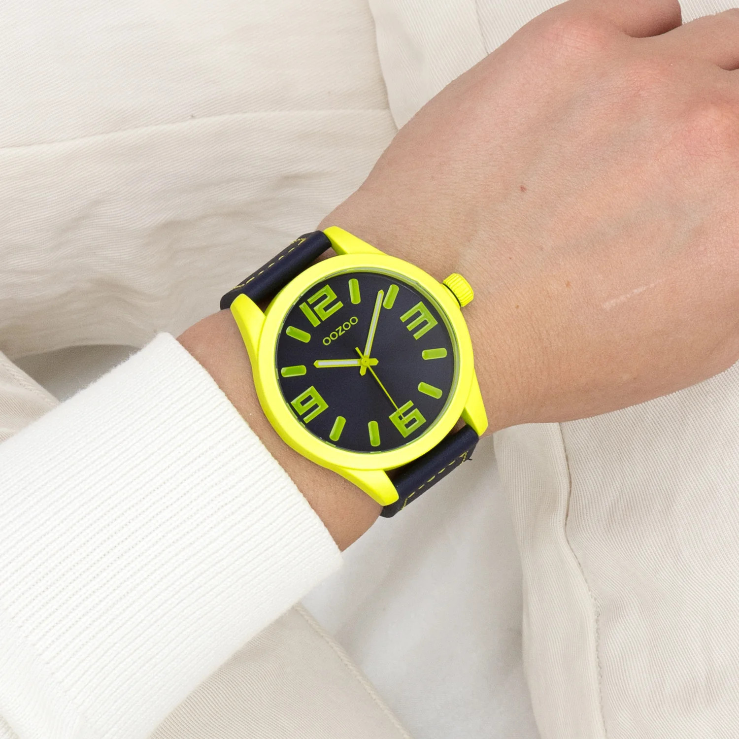 OOZOO XXL Armbanduhr C0907 – Dunkelblau & Gelb Damen 46 mm Lederband