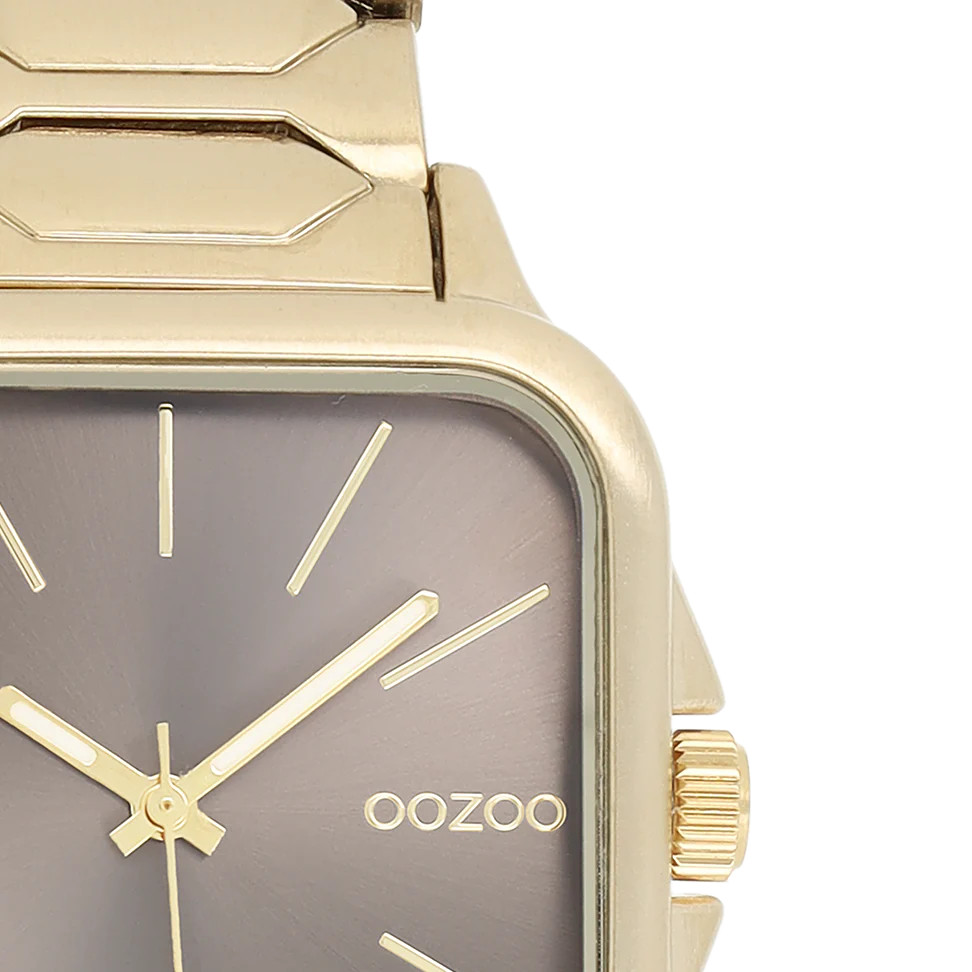 Die OOZOO C11606 kombiniert ein taupefarbenes Zifferblatt mit einem goldfarben IP-beschichteten Gehäuse, das dem Design Wärme und Eleganz verleiht. Das goldene Edelstahlband fügt sich nahtlos an und betont die klare, moderne Linienführung des quadratischen Gehäuses. Ein ausdrucksstarker Look, der durch seine feine Farbabstimmung eine besonders harmonische Wirkung entfaltet.