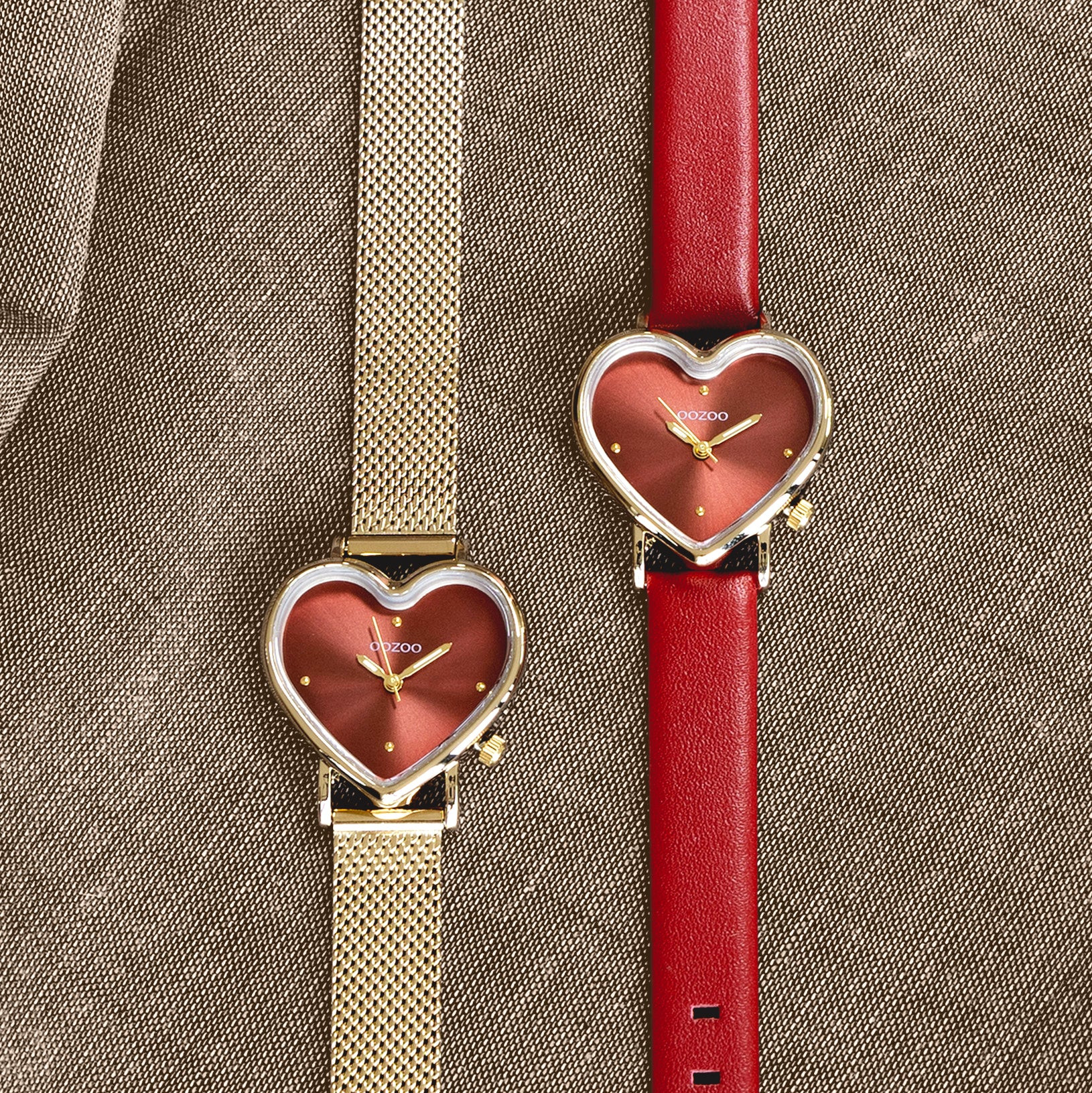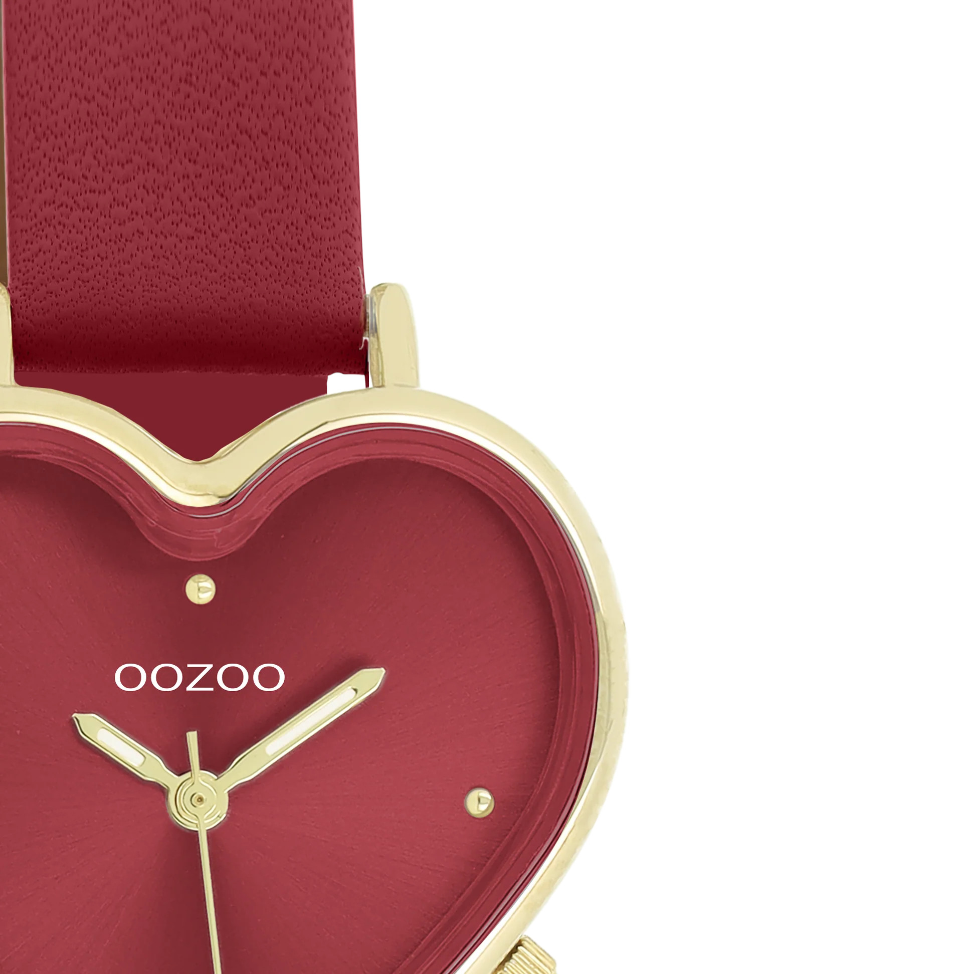 Oozoo Damenuhr C11454 Herzform IP-Gold Lederband Rot 28x29 mm