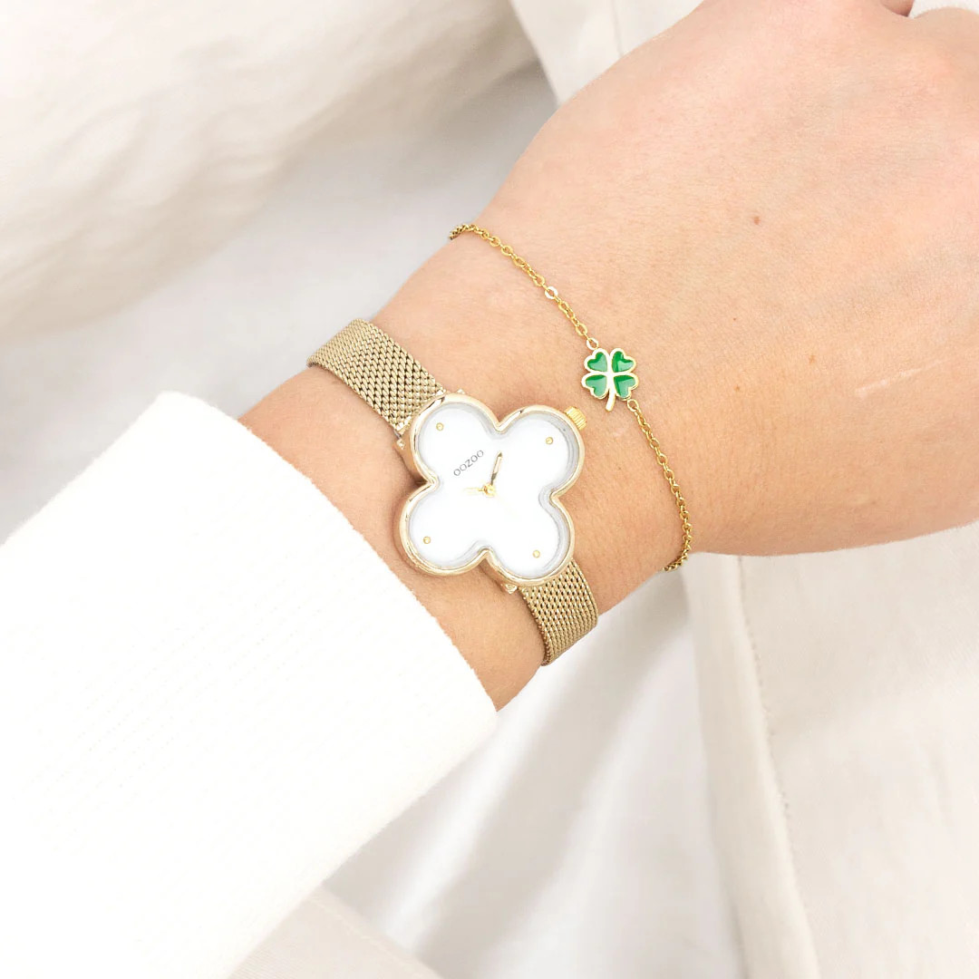 Oozoo Damenuhr C11527 Kleeblattform IP-Gold Milanaiseband 32 mm