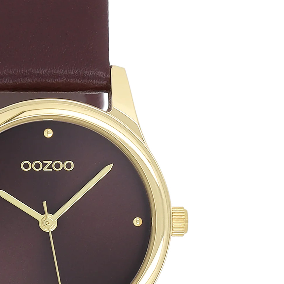 Oozoo Damenuhr C11627 IP-Gold Lederband Burgunderrot 28 mm