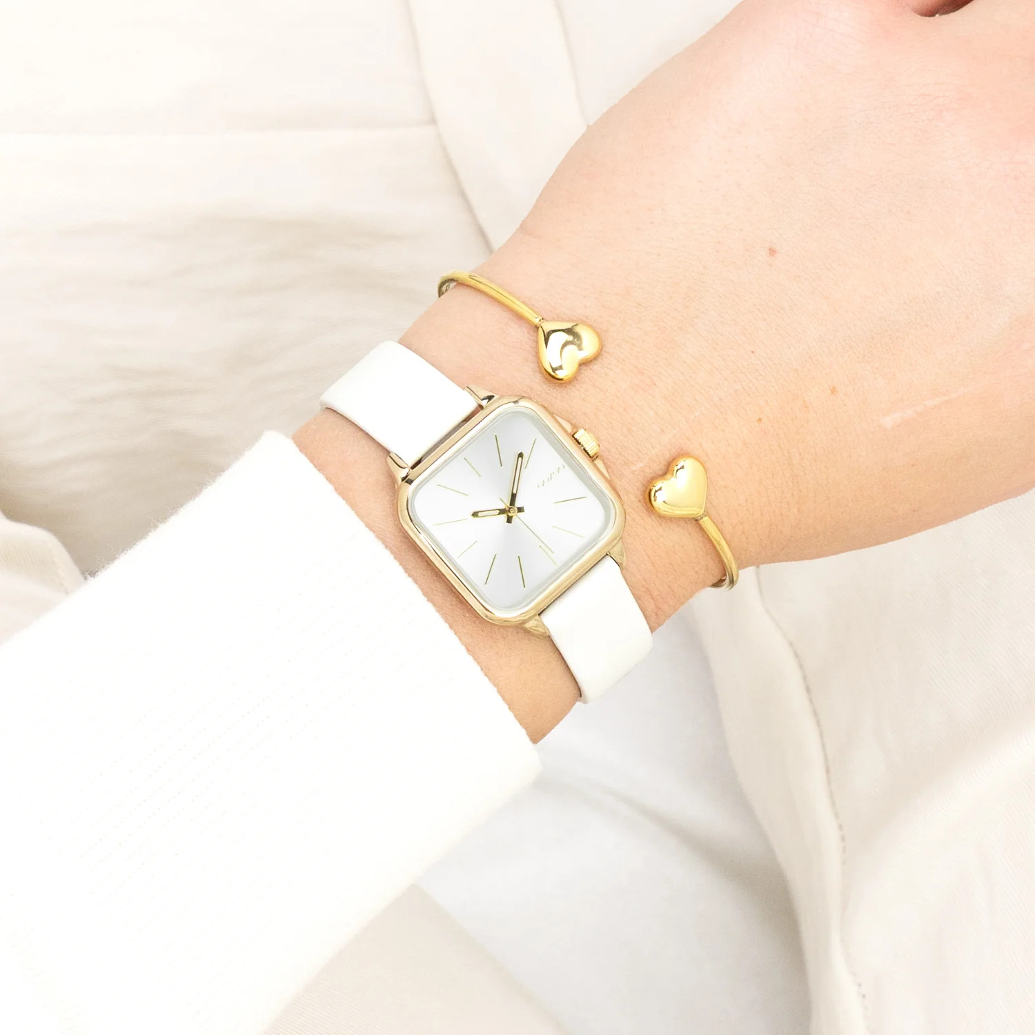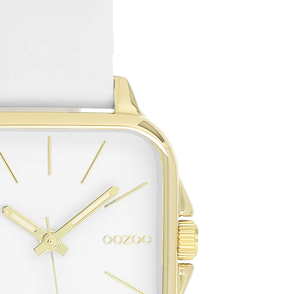 Oozoo Damenuhr C11665 IP-Gold Silbern Lederband Weiss 27x27 mm