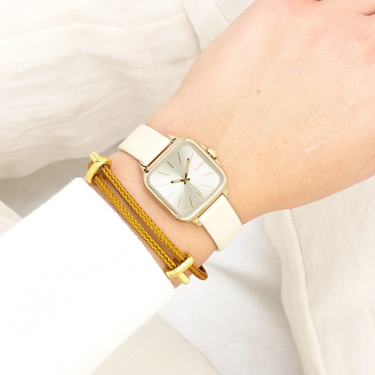 Produktinformationen "Oozoo Damenuhr C11666 IP-Gold Lederband Hellgelb 27x27 mm"