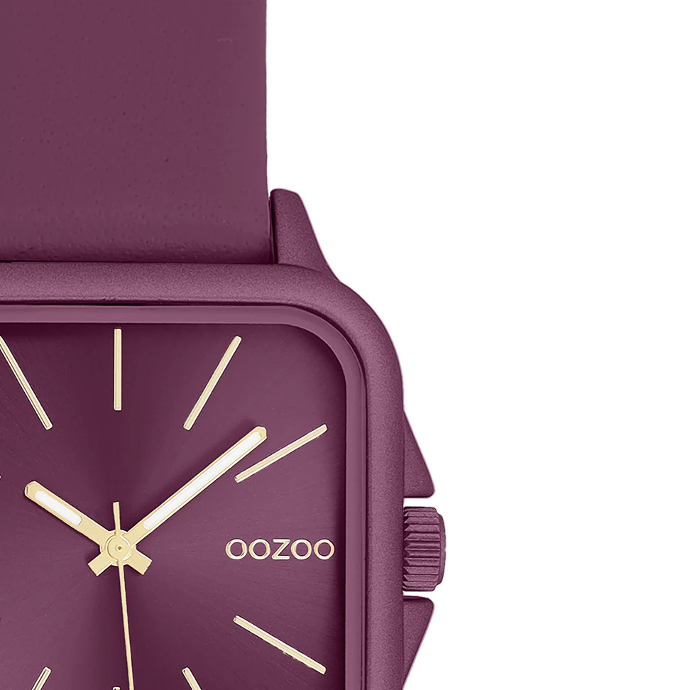 Die Oozoo Damenuhr C11668 überzeugt mit einer tiefen, burgunderroten Farbgebung, die Gehäuse, Zifferblatt und Lederband harmonisch vereint. Das markante 27 x 27 mm Gehäuse sorgt für eine moderne, klare Linienführung und setzt ein stilvolles Statement am Handgelenk.