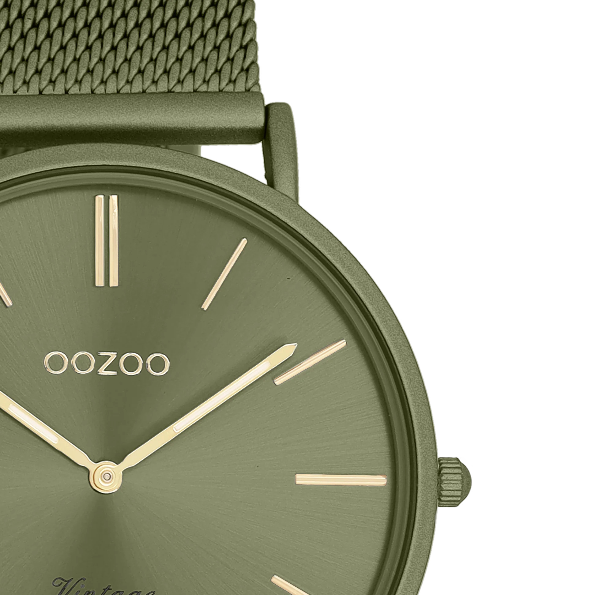 Oozoo Vintage Armbanduhr C20444 Khakigrün Milanaiseband 40 mm