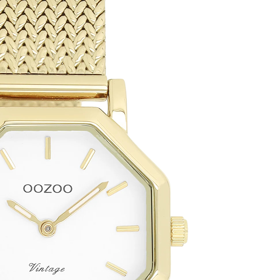Oozoo Vintage Damenuhr C20436 Weiss Milanaiseband IP-Gold 28 mm
