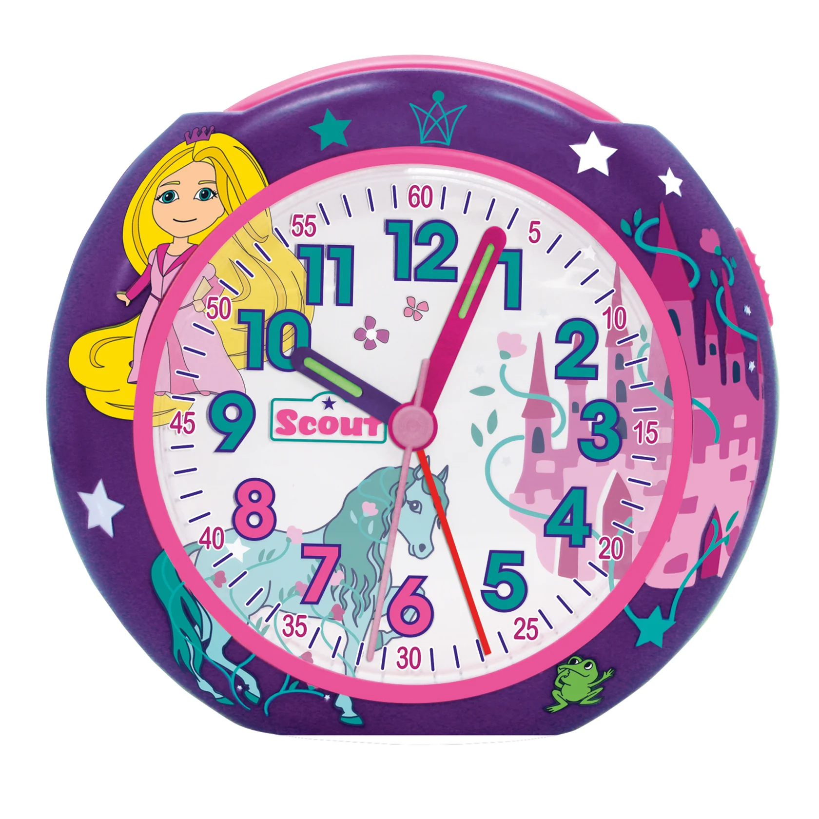 Scout Kinderwecker 166000013 Märchen – Prinzessin Pferd Schloss, Lernwecker mit Licht & Schlummerfunktion
