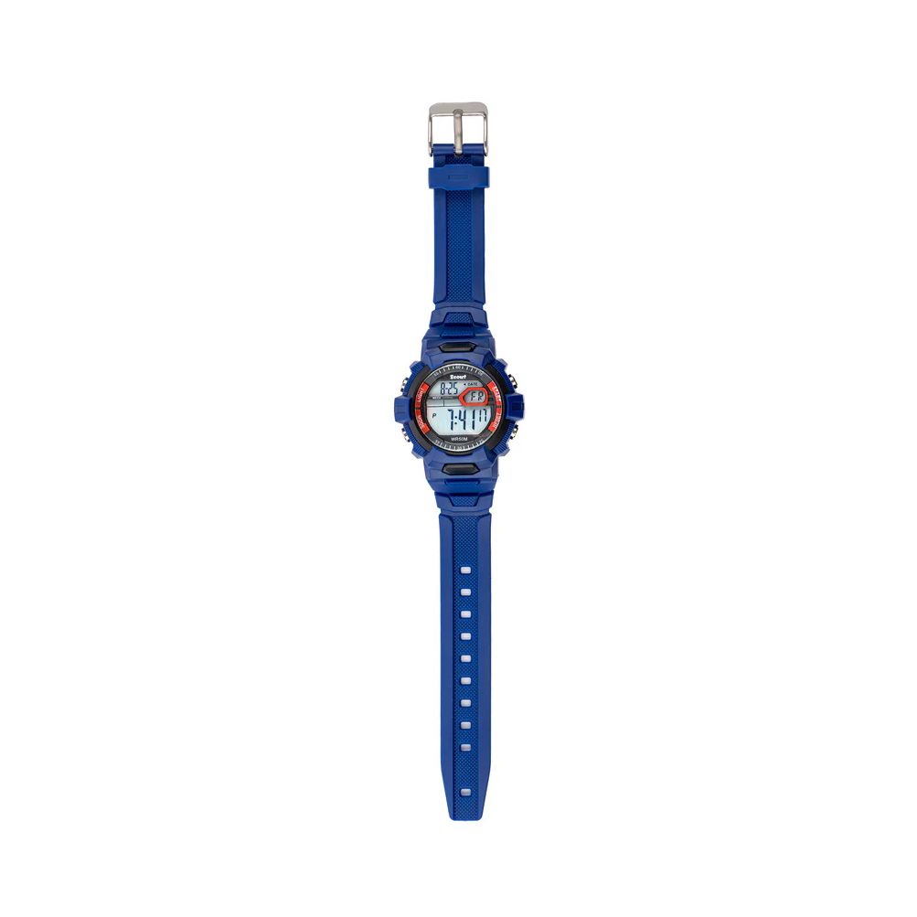 Das robuste Kunststoffgehäuse und das blaue Kunststoffarmband sorgen für hohen Tragekomfort und Widerstandsfähigkeit. Dank 5 Bar Wasserdichtigkeit ist die Uhr bestens für Schule, Sport und Freizeit geeignet.