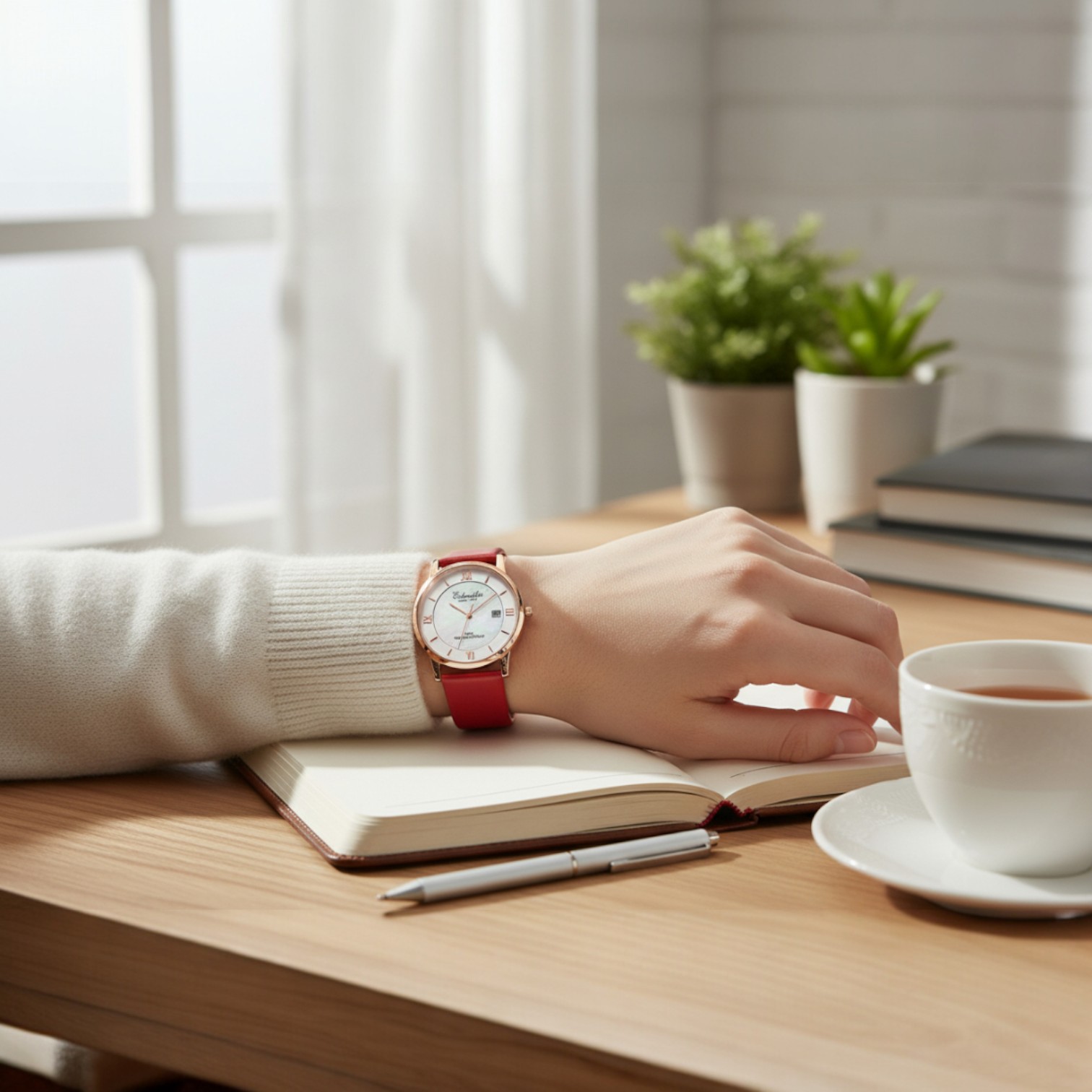 Die Eichmüller Damenuhr 3250-04 besticht durch ihr harmonisches Zusammenspiel aus roséfarbenem Gehäuse, korallfarbenem Lederarmband und edlem Perlmutt-Zifferblatt. Dieses Modell bringt frischen Stil ans Handgelenk – perfekt für modebewusste Damen, die dezente Eleganz mit lebendigen Farbakzenten kombinieren möchten.