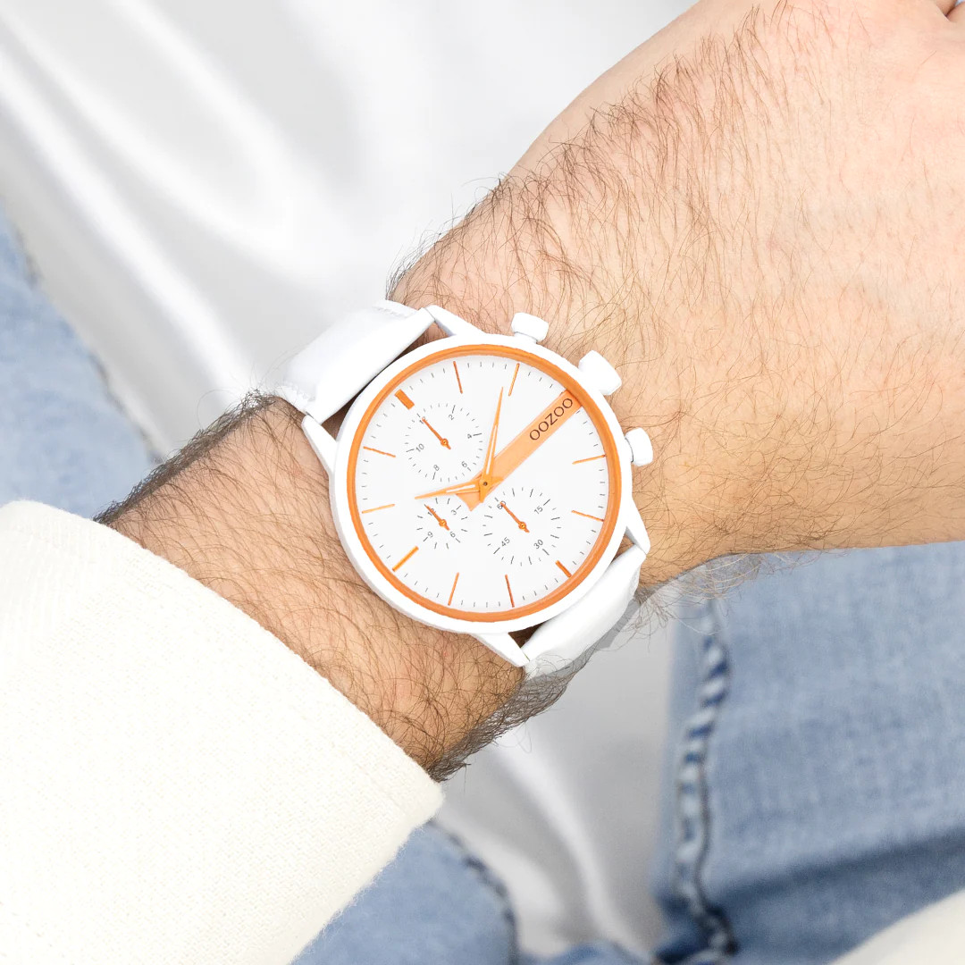 Produktinformationen "Oozoo Herrenuhr C11314 Weiss-Orange Lederband 45 mm"