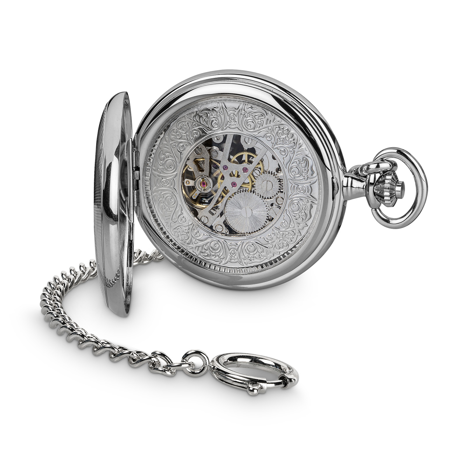 Produktinformationen "Hermann Jäckle Ettlingen Skelett Taschenuhr Handaufzug mit Kette & Reiseetui"