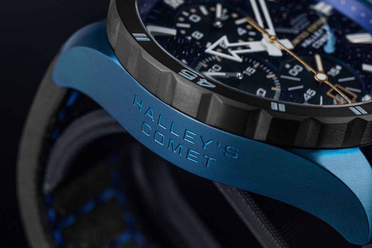 Der Halleysche Komet ist nur etwa alle 75 Jahre von der Erde aus sichtbar und steht für Entdeckung, Forschung und die Faszination des Universums. Diese Uhr greift dieses Thema auf und verbindet es mit moderner Uhrmacherkunst.